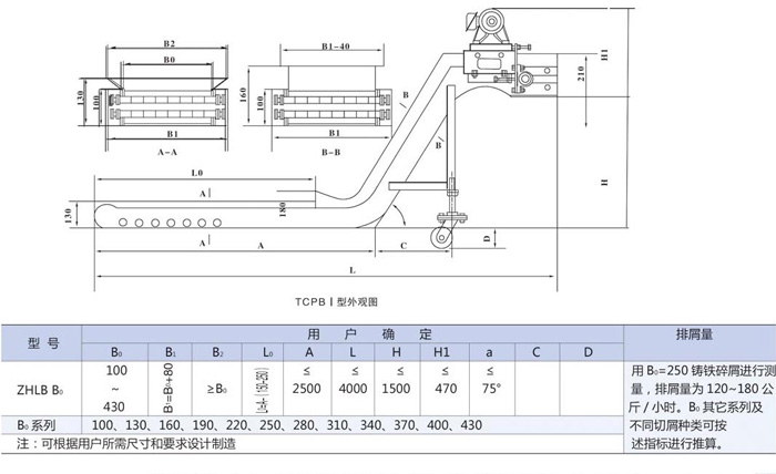 1、根據(jù)安裝空間的大小確定排屑機(jī)的寬度B1,高度需大于130mm