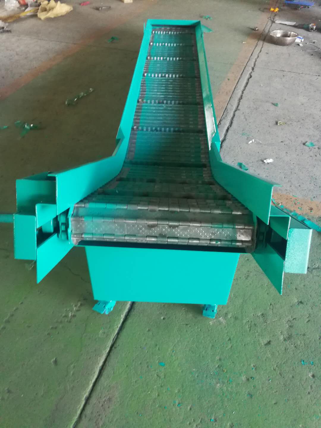 產(chǎn)品概述:鏈板排屑機(jī)由減速電機(jī),驅(qū)動(dòng)鏈條,殼體,排屑鏈板等幾部分組成。減速機(jī)輸出動(dòng)力帶動(dòng)排屑鏈板,將機(jī)床產(chǎn)生的鐵屑輸送到指定位置。通過變化輸送速度、排屑寬度,可以調(diào)整排屑量,并不受切屑種類限制,對鋼件、鑄鐵、銅、鋁及非金屬切屑均適用。