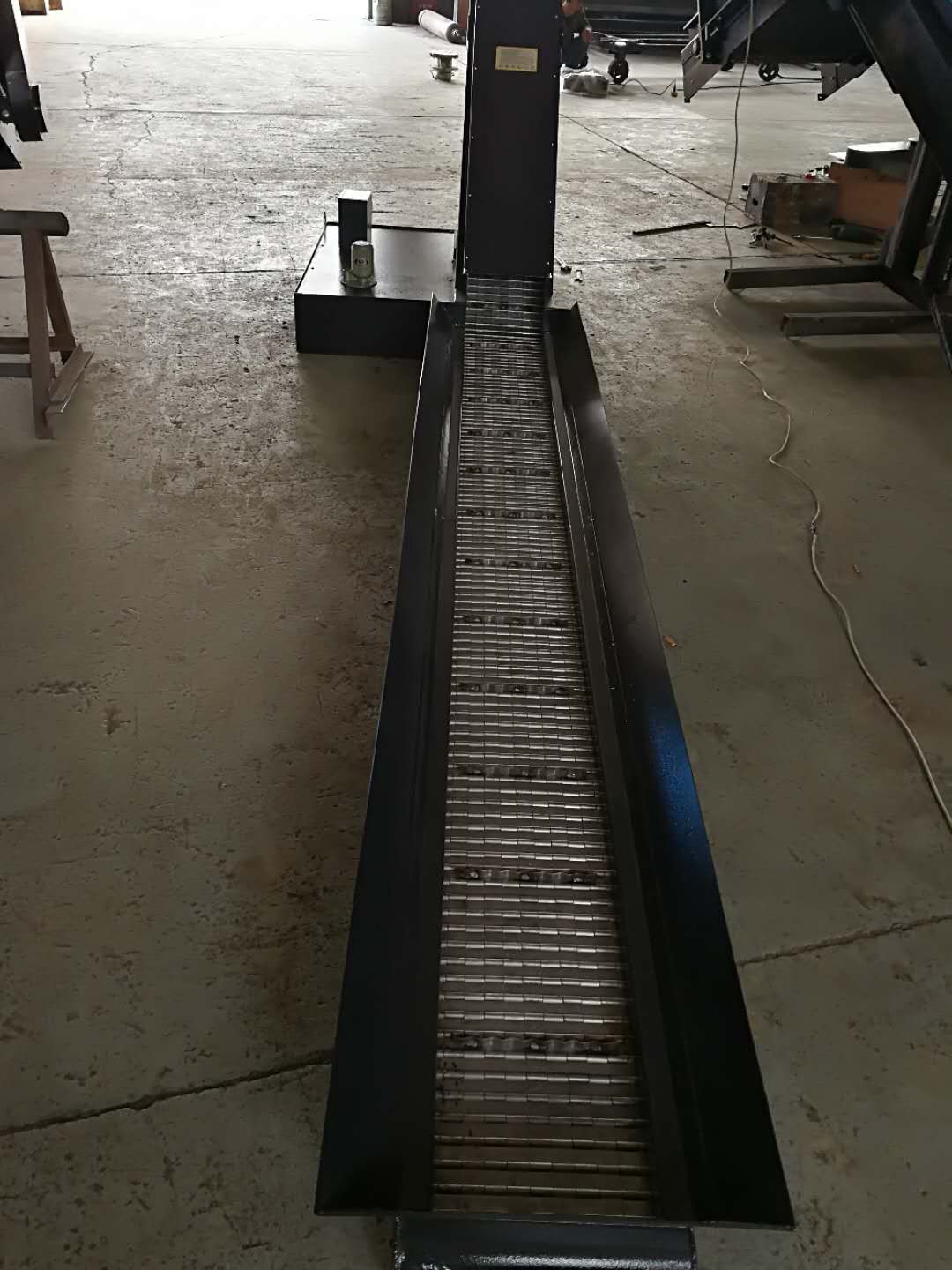 4、我公司生產(chǎn)的鏈板排屑機(jī)廣泛應(yīng)用于車床、鉆床、龍門銑床、鏜床、加工中心及其他專用機(jī)床,操作簡單、運(yùn)行可靠、拆裝方便、維修容易。亦可與其它排屑裝置聯(lián)合使用,形成各種形式排列的切削處理系統(tǒng)。排屑長度可達(dá)40米。